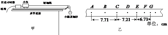 ②某次实验中得到的一条纸带如图乙所示,A、B、C、D、E、F、G为7个相邻的计数点,相邻两个计数点间的时间间隔为