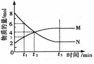 23、在一定温度下,2L密闭容器内某一反应中气体M、气体N的物质的量随时间变化的曲线如下图所示。下列说法正确的是