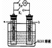 12.如右图所示,a、b是多孔石墨电极,某同学按图示装