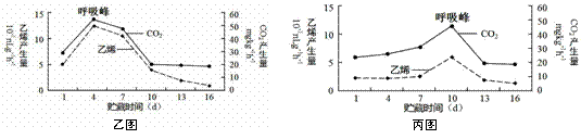 ②比较乙图和丙图可知,在一定浓度的乙烯合成抑制剂作用下,果实的呼吸峰出现时间 ,原因是 。