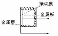如图所示是电容式话筒的示意图,它是利用电容制作的传感器,话筒的振动膜前面镀有薄薄的金属层,膜后距膜几十微米处有一金属板,振动膜上的金属层和这个金属板构成电容器的两极,在两极间加一电压U ,人对着话筒说话时,振动膜前后振动,使电容发生变化,导致话筒所在的电路中的其它量发生变化,使声音信号被话筒转化为电信号,其中导致电容变化的原因可能是电容器两板间的(