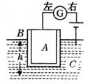 如图所示为一测定液面高低的传感器示意图,A为固定的导体芯,B为导体芯外面的一层绝缘物质,C为导电液体,把传感器接到图示电路中,已知灵敏电流表指针偏转方向与电流方向相同。如果发现指针正向右偏转,则导电液体的深度h变化为( )