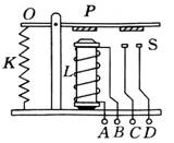 如图所示为小型电磁继电器的构造示意图,其中L为含铁芯的线圈.P为可经O点转动的铁片,K为弹簧,S为一对触头,A、B、C、D为四个接线柱.电磁继电器与传感器配合,可完成自动控制的要求.其工作方式是( )