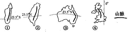 读世界某些岛屿或大陆轮廓示意图(下图),回答34-36题。