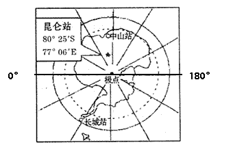 中国首个南极内陆科学考察站昆仑站于2009年1月27日在南极内陆冰盖的最高点冰穹A地区落成,它位于80°25′S,77°06′E,海拔4087米,是人类在南极地区建立的海拔最高的科考站。根据材料和“我国南极考察站分布图”(下图),回答43-44题。