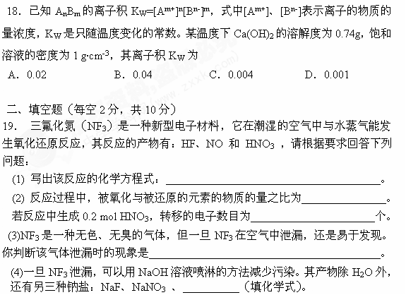 20、已知四种强电解质溶液,分别含有下列阴、阳离子中的各一种,并且互不重复:Ba2+、H+、Na+、NH4+、CO32-、NO3-、OH-、SO42-。将这4种溶液分别标记为A、B、C、D并进行如下实验:![]()