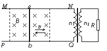 轨上,在水平外力F作用下从t=0时刻开始在图示的两虚线范围内往复运动,其速度随时间变化的规律是v=2sin20πt m/s。垂直轨道平面的匀强磁场的磁感应强度B=4T。导轨、导线和线圈电阻不计。求:![]()