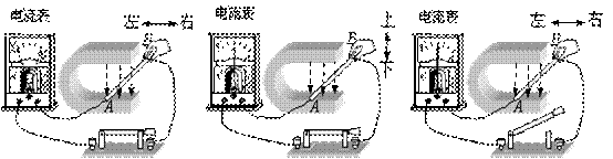 图1 AB棒垂直磁感线左右运动 图2 AB棒沿着磁感线上下运动 图3 AB棒垂直磁感线左右运动