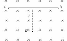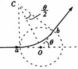 电子在磁场中沿圆弧ab运动,圆心为C,半径为R。以v表示电子进入磁场时的速度,m、e分别表示电子的质量和电量,则