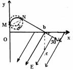 (2)粒子进入电场做类平抛运动,设从b到c垂直电场方向位移x′,沿电场方向位移y′,所用时间为t。则有
