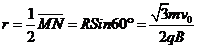 粒子经过磁场区域速度偏转角为120°,这表明在磁场区域中轨迹为半径为R的