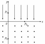 有一个质量为m、电荷量为e的电子,从y轴的P点以初速度v0垂直于电场方向进入电场。接着