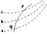 如图所示,虚线a、b、c代表电场中的三个等势面,相邻等势面之间的电势差相等,即Uab=Ubc,实线为一带正电的质点仅在电场力作用下通过该区域时的运动轨迹,P、Q是这条轨迹上的两点,据此可知 ( )