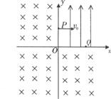 电子从x轴上Q点进入匀强磁场,最后恰从P点以垂直于y轴的方向射出磁场。若OP=h,OQ=h,不计电子的重力。求: