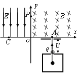如图所示,在xoy直角坐标系中,第Ⅰ象限内分布着方向垂直纸面向里的匀强磁场,第Ⅱ象限内分布着方向沿y轴负方向的匀强电场。初速度为零、带电量为q、质量为m的离子经过电压为U的电场加速后,从x上的A点垂直x轴进入磁场区域,经磁场偏转后过y轴上的P点且垂直y轴进入电场区域,在电场偏转并击中x轴上的C点。已知OA=OC=d。求电场强度E和磁感强度B的大小。