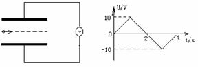一束电子以Ek=100eV的动能在t=0时由中心水平进入电场,而电容器两板间电势差随时间的变化如图所示。试求电容器两板间有电子穿出与无电子穿出的时间之比。(电子质量