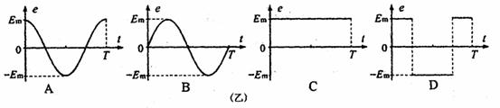 当线框匀速转动时,乙图中可正确反映线框感应电动势e随时间t变化规律的是