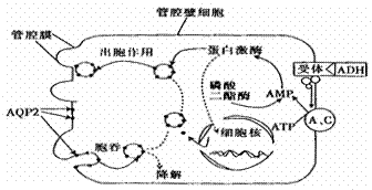 31、(8分)下图为抗利尿激素(ADH)对肾集合管(肾小管集合部)管腔壁细胞膜的水通道蛋白(AQP2)数量的调节机制示意图。请结合所学知识分析回答: