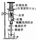 (12分)右图显示一个用以测量水草光合作用速率的装置。实验材料和