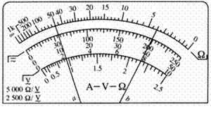 (4分)多用电表是实验室和生产实际中常用的仪器.使用多用电表进行了两次测量,指针所指的位置分别如图中a、b所示。若选择开关处在“×10Ω”的电阻档时指针位于a,则被测电阻的阻值是_________Ω;若选择开关处在“直流电压2.5V”档时指针位于b,则被测电压是_____________V。