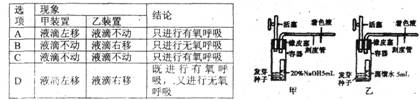 4.下图是测定发芽种子的呼吸类型所用装置(假设呼吸底物只有葡萄糖,蒸馏水不吸收CO2,不考虑外界条件的影响),下列有关说法错误的是