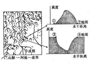 图4是我国西南某地地形和构造剖面图。读图,回答9-10题。