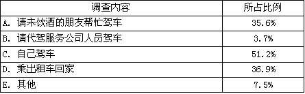 某研究小组就市民酒后驾车现象进行了相关内容的调查,并获得数据如下:
