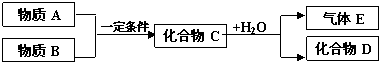 26.(12分)短周期元素形成的纯净物A、B、C、D、E是转化关系如下图所示,物质A与物质B之间的反应不在溶液中进行(E可能与A、B两种物质中的某种相同)。