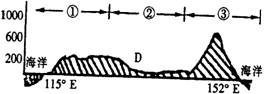 某国沿纬度为30o的地形剖面图,读图回答6-8题: