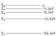 E1=-54.4 eV,氦离子能级的示意图如下所