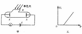 Uc 时,电流消失,Uc称为截止电压.当改变照射光的频率v,截止电压 U c也将随之改变,其关系如图乙所示.如果某次实验我们测出了画这条图线所需的一系列数据,又知道了电子的电荷量,则可求得( )