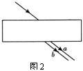 如图2所示,一束平行光射到平行玻璃板上,经过上、下两个表面折射后,分成a、b两束单色光射出平行玻璃板,以下说法中正确的是( )![]()