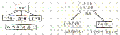 材料一 唐朝和古代雅典政治制度结构示意图:![]()