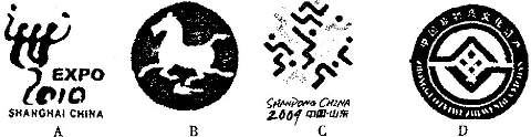 37.(1)上海世博会以“城市,让生活更美好”为主题,体现了以人为本的理念,反映了人类对城市发展前景的希望。以下标志与世博会有关的是 ( )