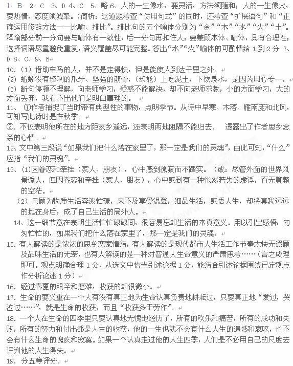 说明:① 构思新颖有创造,或语言生动有文采,或书写美观端正、卷面整洁,酌加2