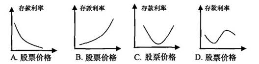 26.银行存款利率和证券市场的股票价格是相互影响的关系。这两者的关系用曲线来表示,应该是