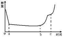 (2)科研人员在研究玉米时,从收获的种子开始作鲜重测量,得如右图所示曲线。在oa时间段,种子的鲜重显著减少,减少的主要是