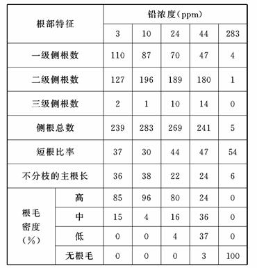 下表显示重金属铅对山毛榉植物根部的影响。下列叙述中正确的是 ( )