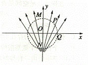 如图所示,一簇电场线的分布关于y 轴对称,O 是坐标原点,M 、N 、P、Q是以O 为圆心的一个圆周上的四个点,其中M 、N 在y 轴上,Q 点在二轴上,则 ( )