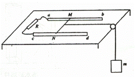 22.如图所示,相距为l 的光滑平行金属导轨ab 、cd 放置在水平桌面上,阻值为R 的电阻与导轨的两端a 、c相连。滑杆MN质量为m ,垂直于导轨并可在导轨上自由滑动,不计导轨、滑杆以及导线的电阻。整个装置放于竖直方向的范围足够大的匀强磁场中,磁感应强度的大小为B 。滑杆的中点系一不可伸长的轻绳,绳绕过固定在桌边的光滑轻滑轮后,与另一质量也为m 的物块相连,绳处于拉直状态。现将物块由静止释放,当物块达到最大速度时,物块的下落高度