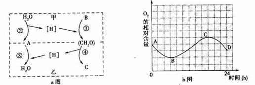 26.(16分)Ⅰ.下面a图表示番茄叶肉细胞内两个重要生理过程中C、H、O的变化, b图表示一个种植有番茄植株的密闭容器内氧气含量的变化曲线。请据图回答: