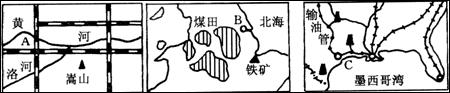 下面分别为A、B、C三个城市示意图,据图回答34-36题。
