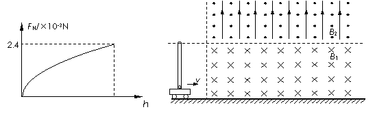 16.(12分)如图所示,水平地面上有一辆固定有竖直光滑绝缘管的小车,管的底部有一质量m=0.2g、电荷量q=8×10-5C的小球,小球的直径比管的内径略小.在管口所在水平面MN的下方存在着垂直纸面向里、磁感应强度B1= 15T的匀强磁场,MN面的上方还存在着竖直向上、场强E=25V/m的匀强电场和垂直纸面向外、磁感应强度B2=5T的匀强磁场.现让小车始终保持v=2m/s的速度匀速向右运动,以带电小球刚经过场的边界PQ为计时的起点,测得小球对管侧壁的弹力FN随高度h变化的关系如图所示.g取10m/s2,不计空气阻力.求: