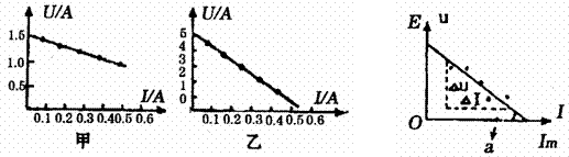 (2)右图所示是根据两个电源的测量数据绘制的图线。由图可知:图线与电压U轴的交点表示 ;电源Ⅰ的内电阻 电源Ⅱ的内电阻(填“大于、小于或等于”)。