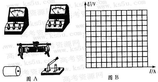 [例1]测量电源电动势和内电阻的器材如图A所示,请用实线表示导线,将图A中器材连成实验用电路。实验时经测量得出的数据如下表,请在下图B的方格纸上画出U-I图线。利用图线可求出电源电动势E= ,内电阻r= 。