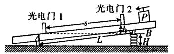 ④测得垫片高度为H,导轨单脚螺丝B到双脚螺丝A间的距离为L,两光电门间的距离为s;