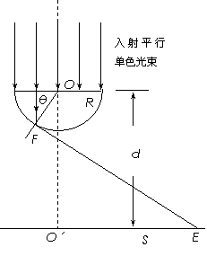 解: 设光恰好要发生全反射时的临界光线照射到屏幕S上的E点到亮区中心