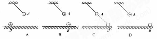 5、下面图中A球系在绝缘细线的下端,B球固定在绝缘平面上,它们带电的种类以及位置已在图中标出。A球能保持静止的是 ![]()