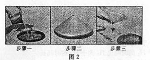海水淡化的装置由一个透明的倒置漏斗和一个底盘组成。首先将海水导入底盘内(步骤一),然后将漏斗倒扣在底盘上,太阳光透过漏斗来加速内部的海水蒸发,而淡化的水蒸气则会在漏斗壁上凝结成水滴,并顺势流到漏斗四周的凹槽中储存起来(步骤二);等储存了适量的水之后,把漏斗倒过来,将净化过的海水直接倒入容器即可(步骤三)。读图2,回答5-6题。