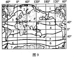 读世界大洋自然带分布图(图9),回答20-21题。